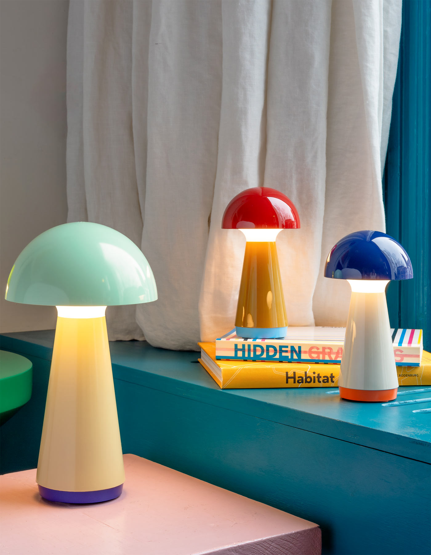 Bobbi. Esta versión miniatura de la lámpara Bob conquista a todos al instante y, gracias a su práctico tamaño, encuentra el lugar perfecto en cualquier sitio. Una vez cargada por USB, la lámpara proporciona hasta 46 horas de luz, completamente inalámbrica. Bobbi tiene tres niveles de intensidad, es resistente a las salpicaduras y, por lo tanto, una compañera encantadora en el baño o en el patio.