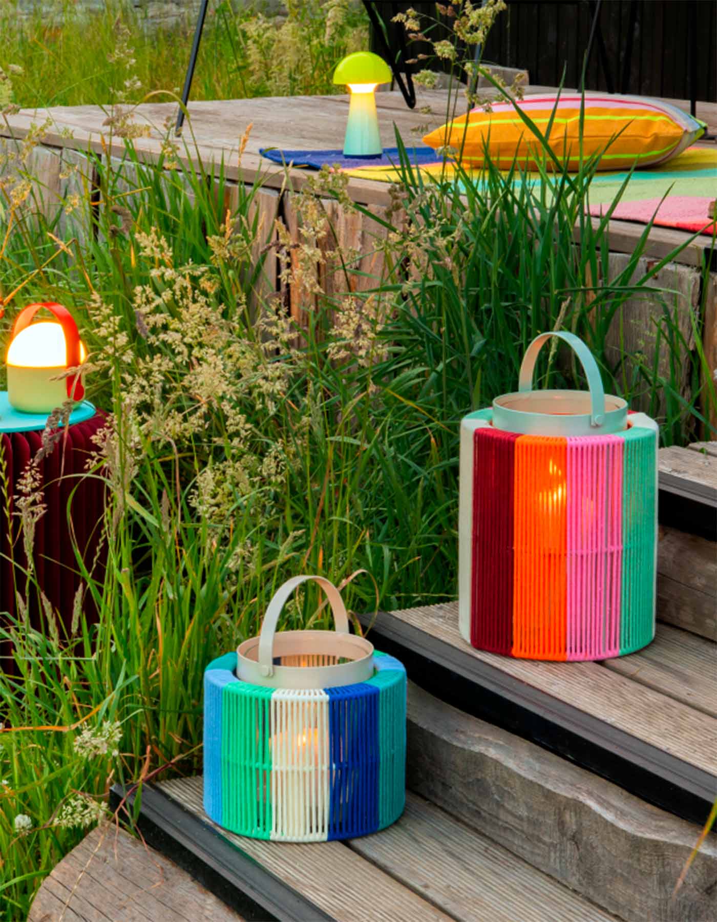 Esta linterna de cordón de algodón de colores es realmente especial: con o sin vela, su diseño vibrante llama la atención y decora maravillosamente tu hogar. Las velas encendidas se mantienen firmes dentro de un cilindro de vidrio, creando hermosos dibujos con el cordón. La linterna Maja está disponible en dos tamaños con diferentes combinaciones de colores.
